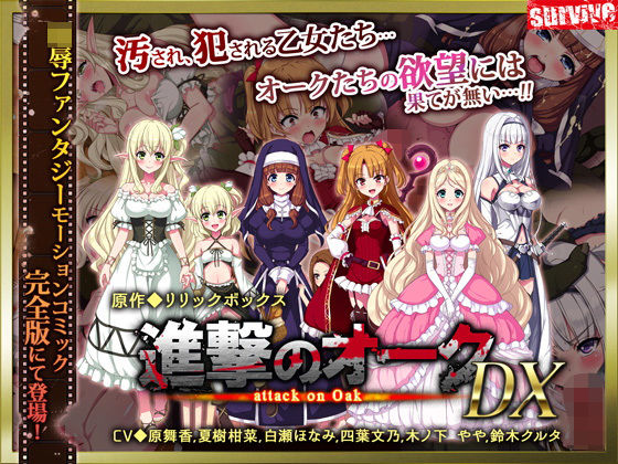 サークル「survive」制作の同人誌『進撃のオーク DX(モーションコミック版)』を紹介します。中出し要素が好きな方に向けて、抜きどころや注目ポイントを中心にわかりやすくまとめています。